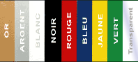 Or, argent, blanc, noir, rouge, bleu, vert, transparent*